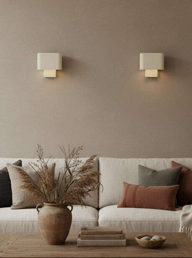 A two‑height lighting composition that brings balance, warmth, and grounded beauty across the room.
